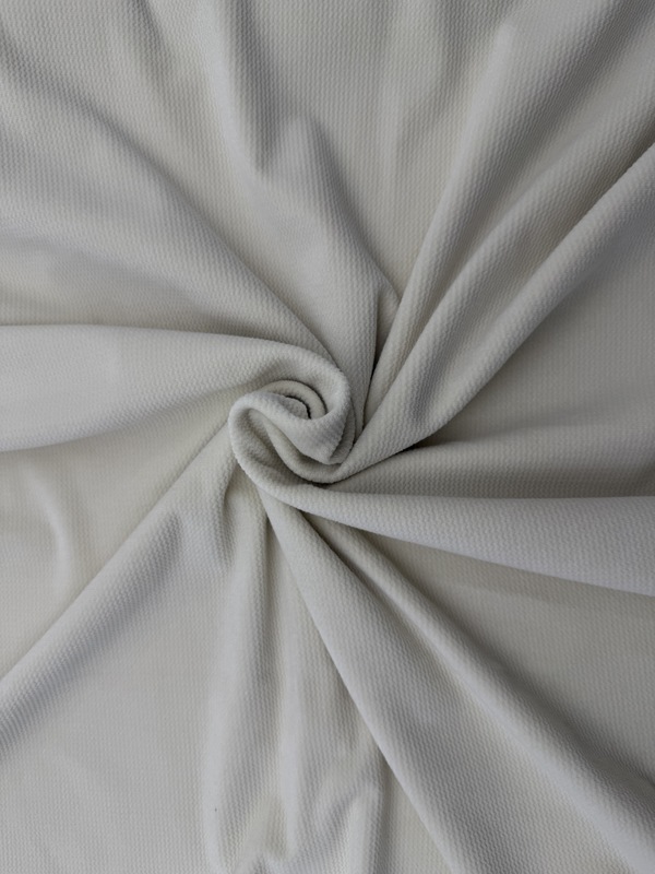 Le tissu en polyester velours micro-élastique est un choix polyvalent et populaire pour diverses applications textiles en raison de ses caractéristiques exceptionnelles. Ce tissu est composé de 94 % de polyester et de 6 % d'élasthanne, garantissant durabilité, douceur et facilité d'entretien. Avec une largeur de 67/68 pouces et un poids allant de 210 à 280 g/m², il offre un équilibre parfait entre légèreté, confort et praticité.